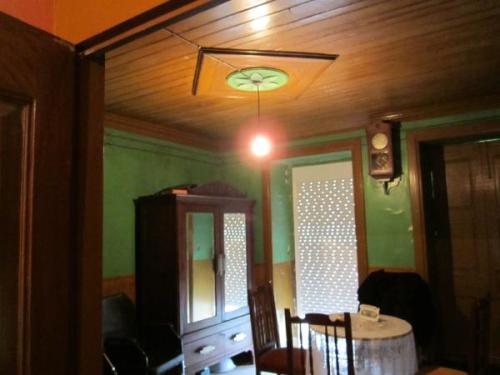 No fundo da casa, está a sala de Xantar, com varanda e fiestra sobre a rumorosa ribeira, pintada estranhamente de verde esmeralda e imitacion de madeira nos baixos da parede, tem elementos decorativos perfeitos na sua harmonia.