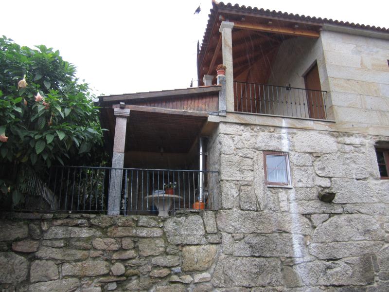 Pois mesmamentemente ó lado está esta casa de pedra, paraíso de misântropos, grande mas discreta, aconchegada no murmurio do ribeiro montarás, foi mimosamente respeitada, e conservase ainda hoxe em dia tal e como foi construida por primorosa man de mestre.