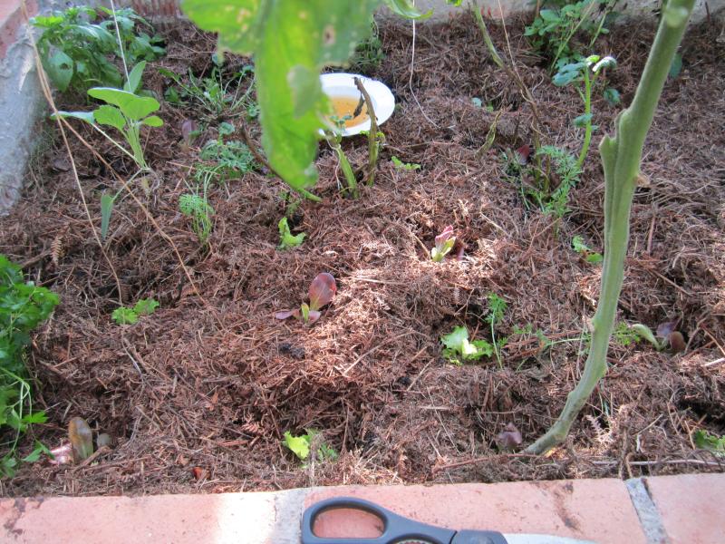 .Houbo unha continuada producion de alfaces desde a primavera temperan, que agora xá escomeçan a grelar, e advenhen os pepinos e os tomates com os quais fixemos duas saladas.