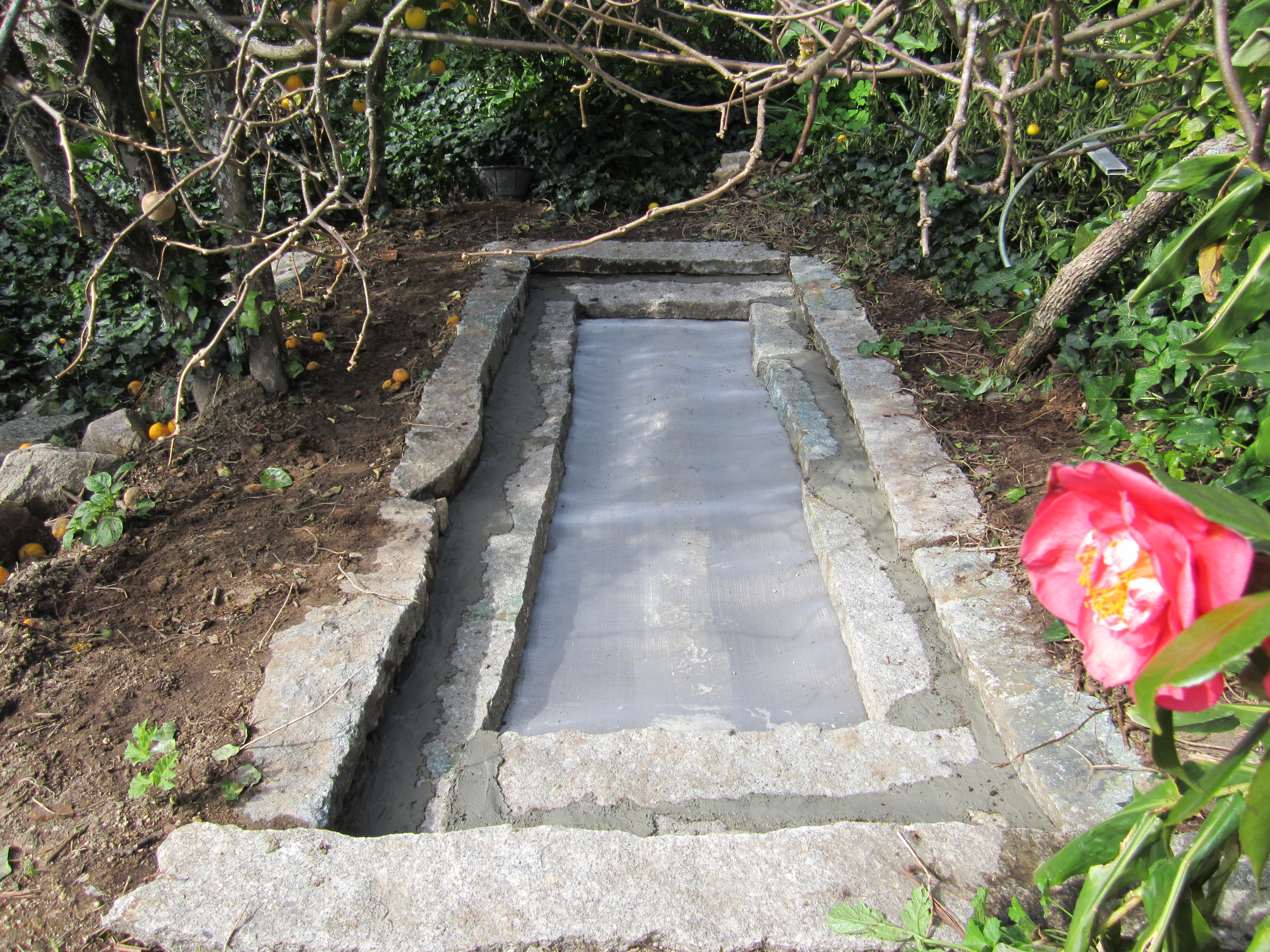 colocamos unha rede de aço-inox, que impedira que toupeiras e raiçes o penetren.