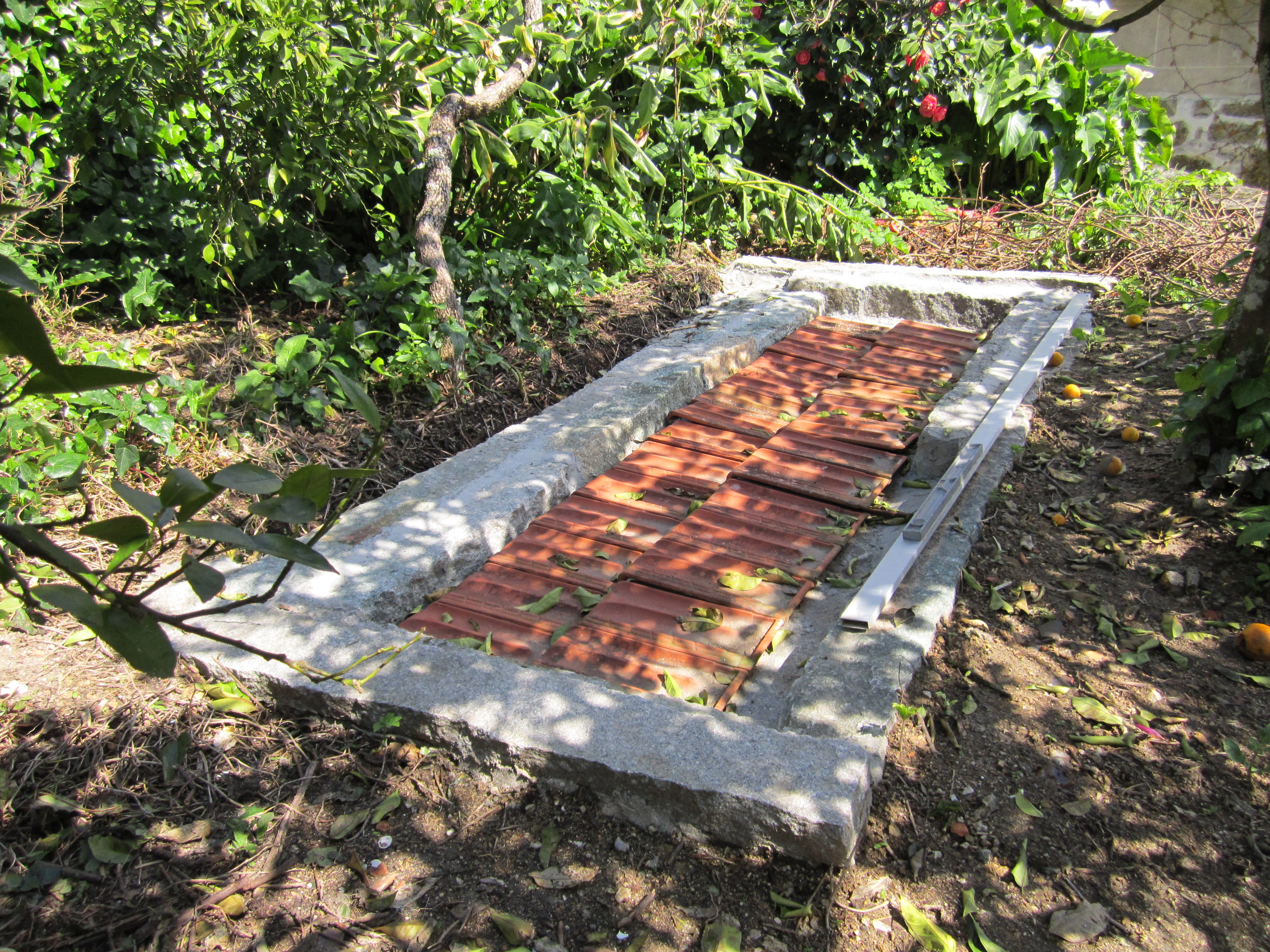 despois preparamos um drenaxe com telhas planas,